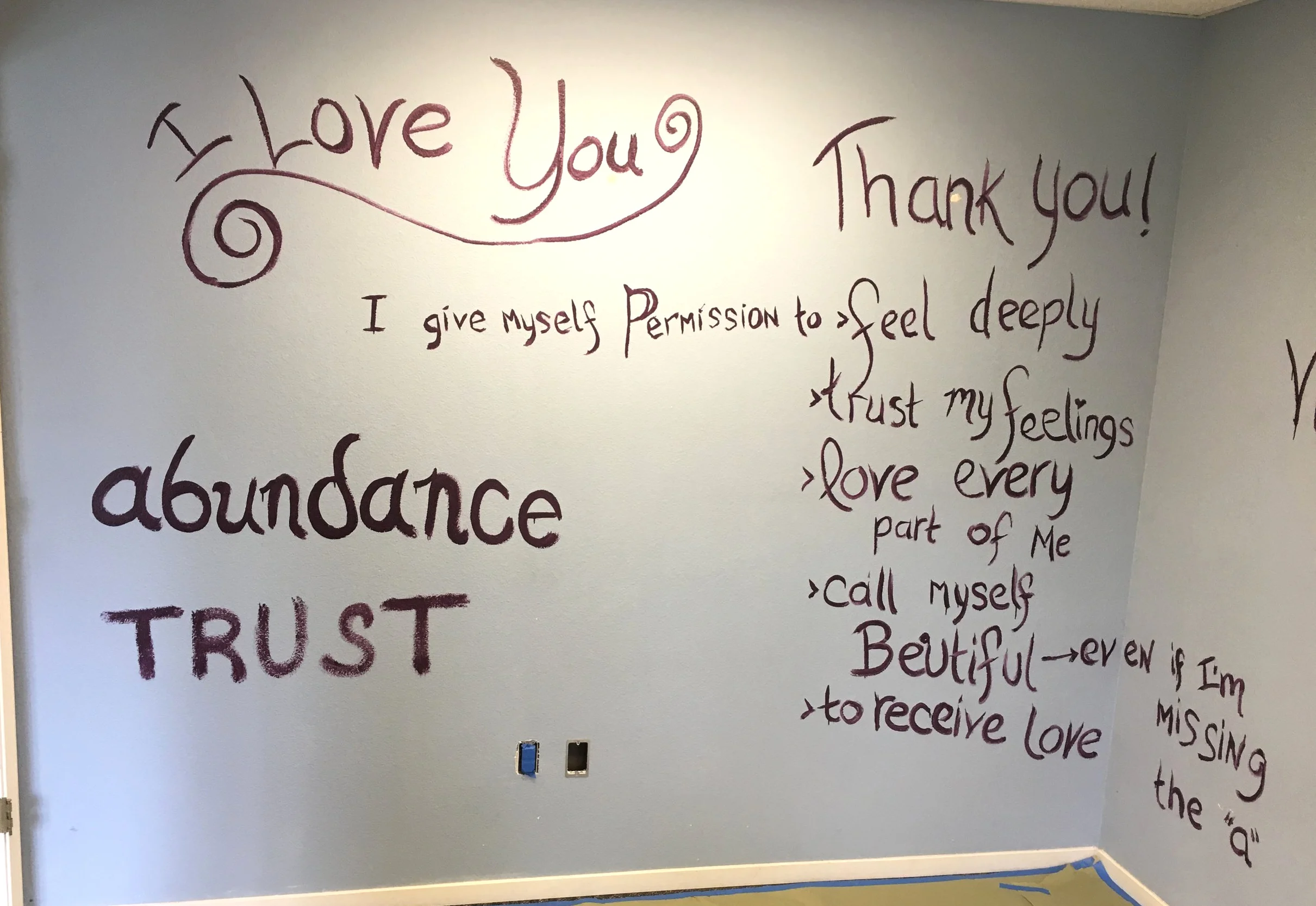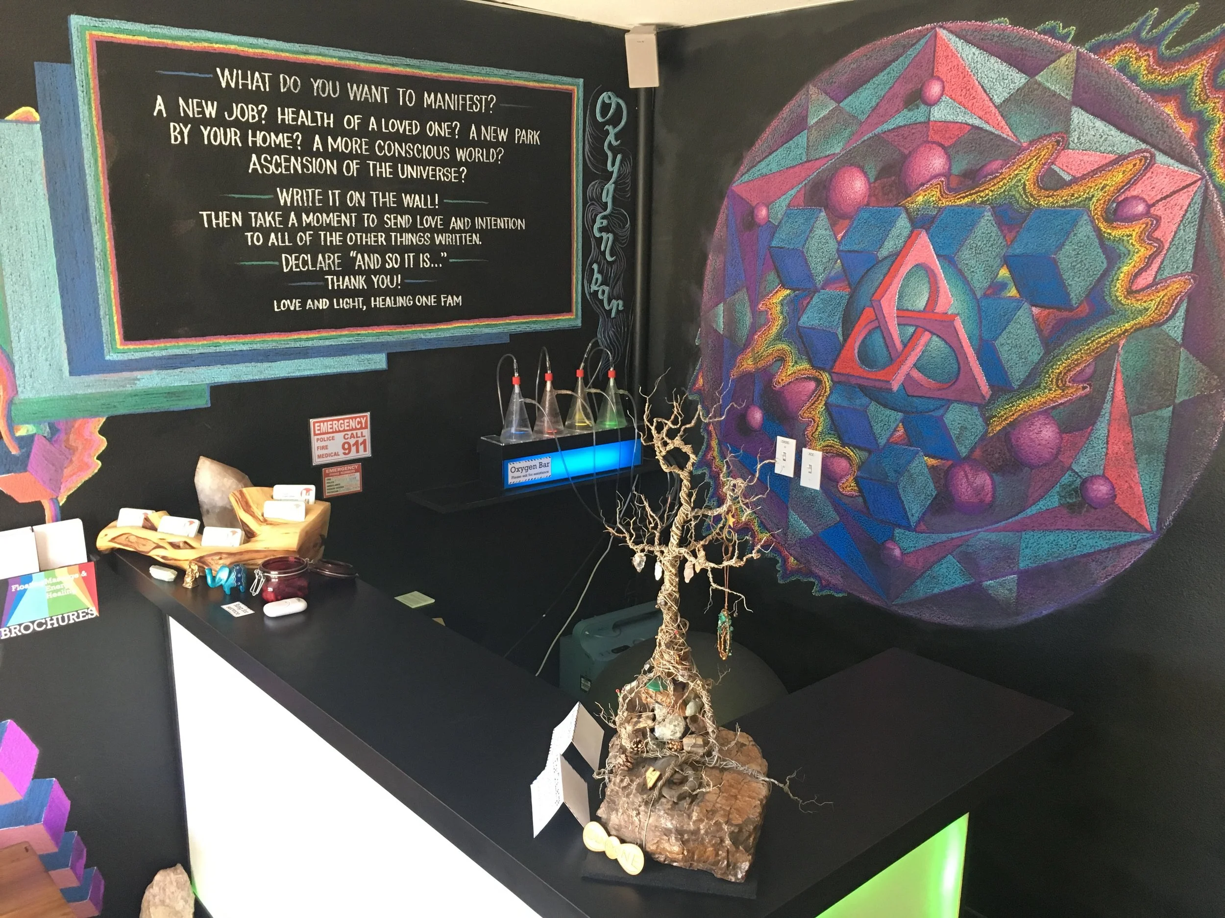 From our first float and massage room build outs, it was important to incorporate those intentions into the space. We wanted each space to reflect the safety, love, and relaxation necessary for optimal healing. It began by painting our intentions for the center on the walls. Though they were painted over, it started the process and evolution with a trajectory that carried us deeper and deeper into helping others. The center itself was set up on a crystal grid that allows energy to be self-renewed and refreshed constantly, allowing for complete grounding of the space and anything released there in. The work was fun and enjoyable, bonding the employees within our mission, and created a place of cooperation and intention. To create safety around our center we put up a sign warning our guests of the “right turn only,” and created tasks for our employees to pick up any garbage in our area, furthering a mentality of ownership for the cleanliness of our environment and our space.